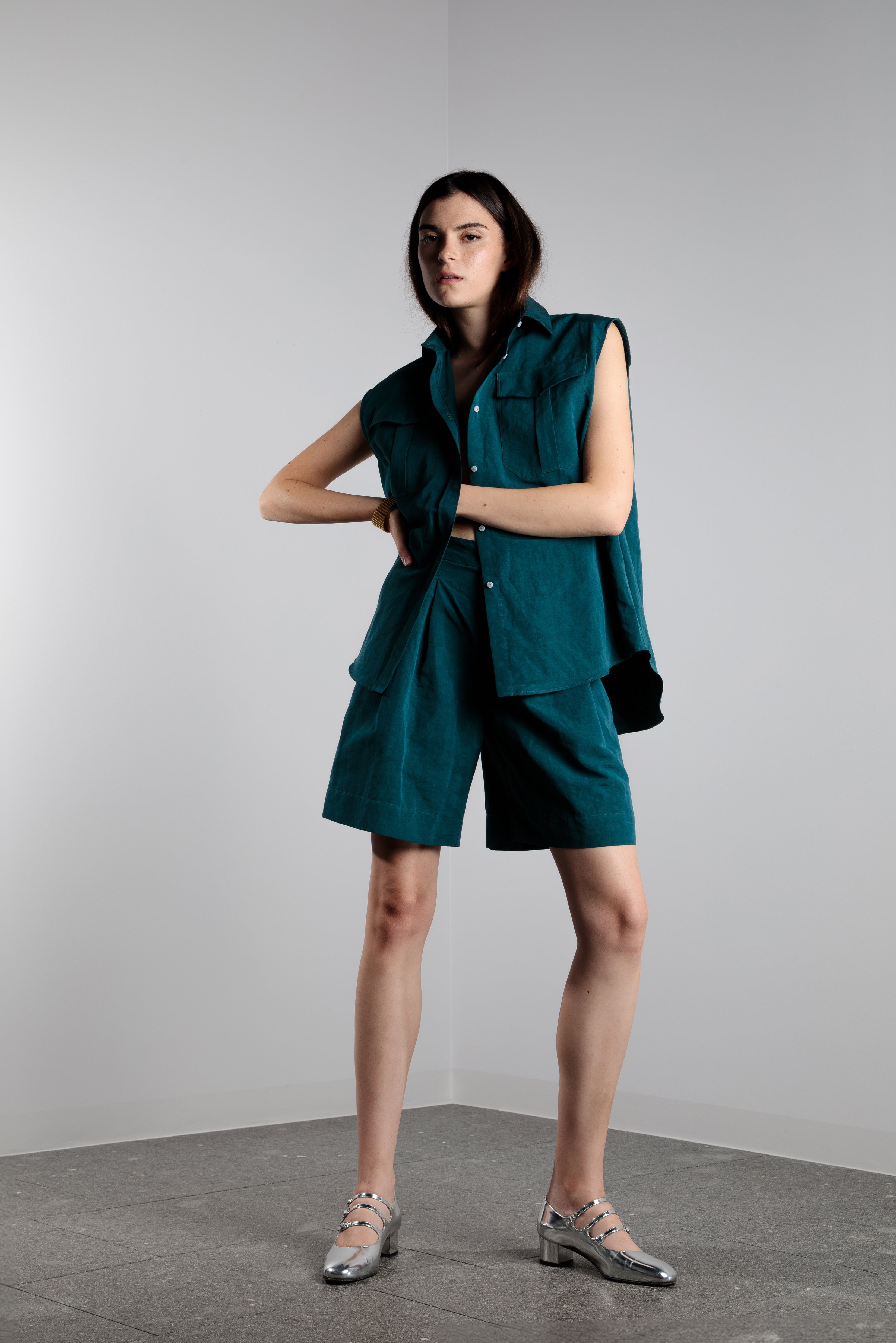 View Similar ProductsBoxy shirt with short sleeves and chest patch pockets.