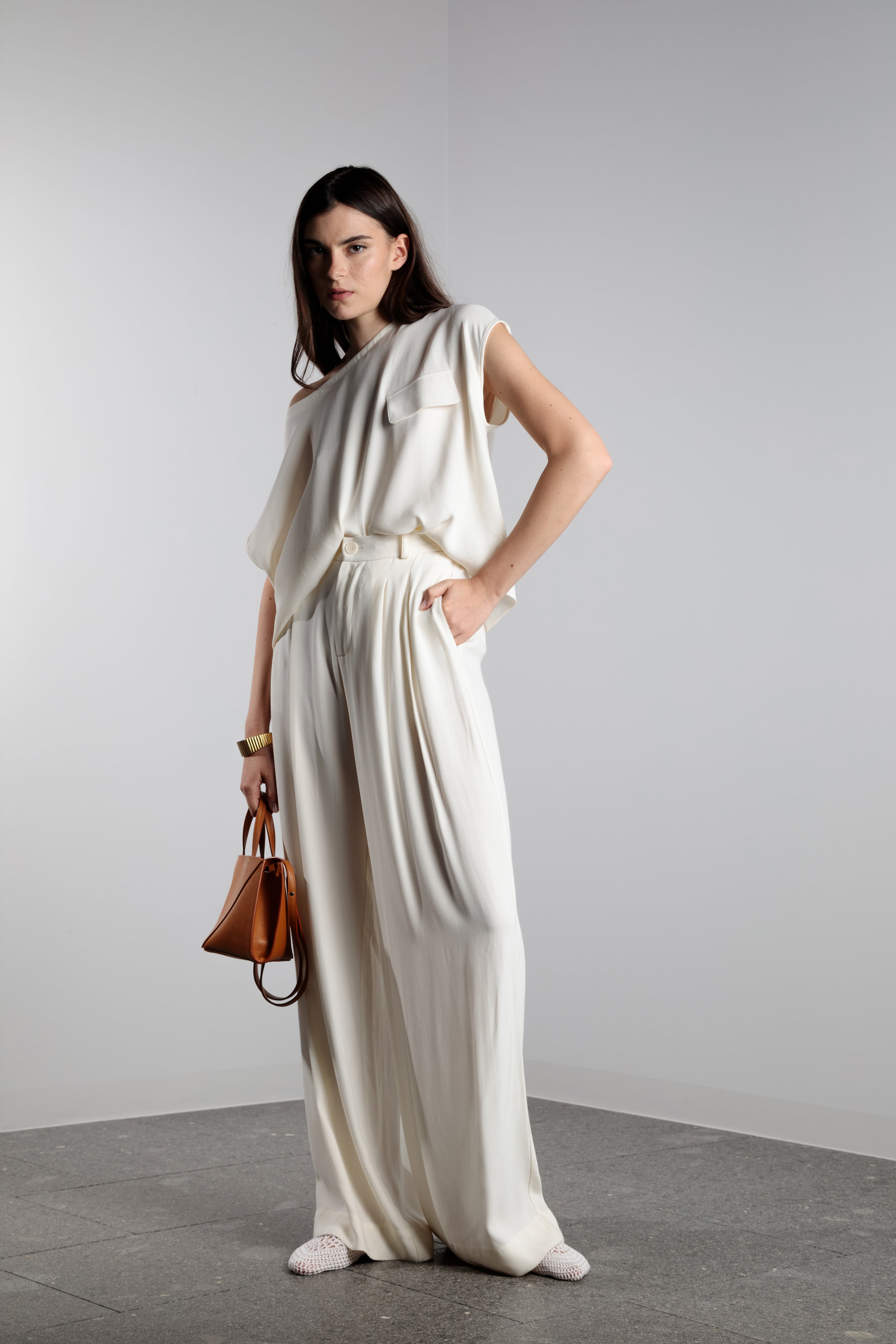 Model is 1,79 cm (5’9’’) and she is wearing a size I.