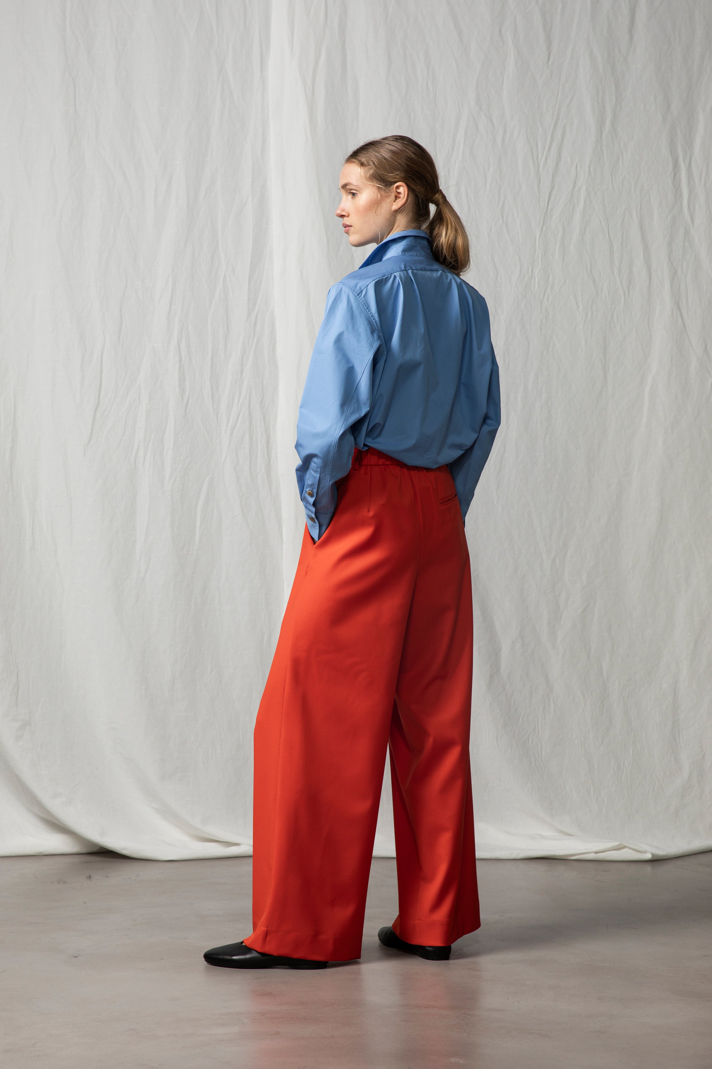View Similar ProductsSartorial pleated trousers with elastic on the back and mother of pearl button.