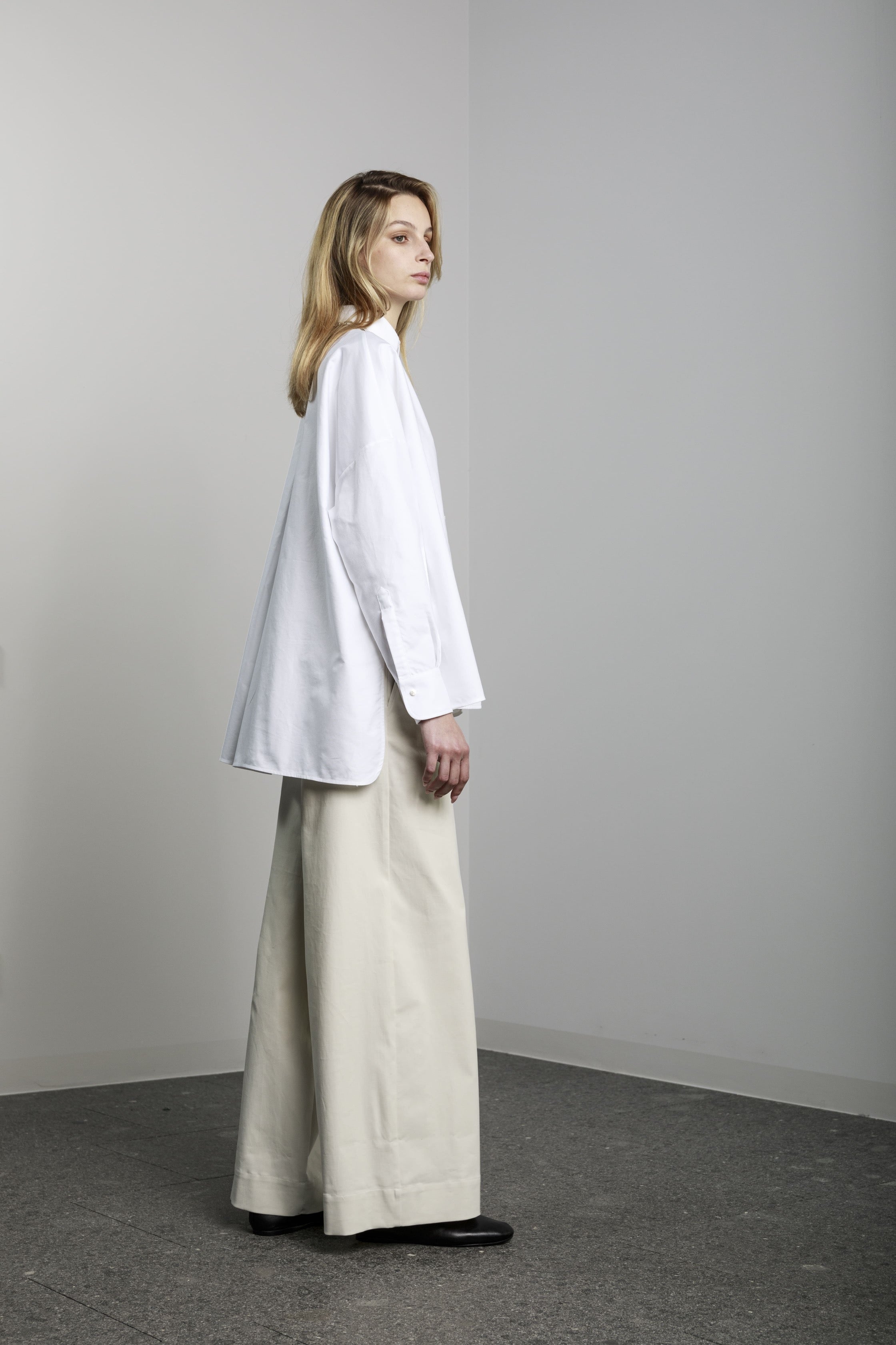 View Similar ProductsGeometrical shirt with rounded collar, longer back and mother of pearl buttons.